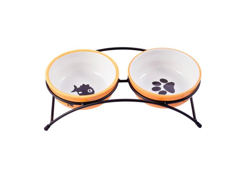 Mr.Kranch Миски на подставке для собак и кошек Двойные 290мл х 2 шт Оранжевые