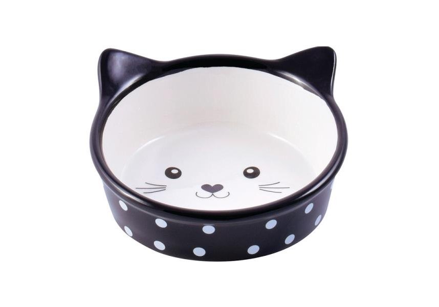 Mr.Kranch Миска керамическая для кошек Мордочка кошки в горошек 250 мл Черная