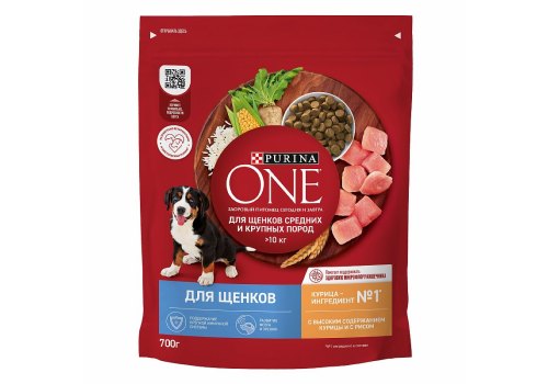 Сухой корм для щенков Purina ONE® с высоким содержанием курицы и с рисом 700 г — это: