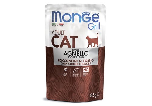 Monge Grill buste Adult agnello Влажный корм Паучи Монж для взрослыз кошек Новозеландский ягненок (цена за упаковку) 85г х 28шт