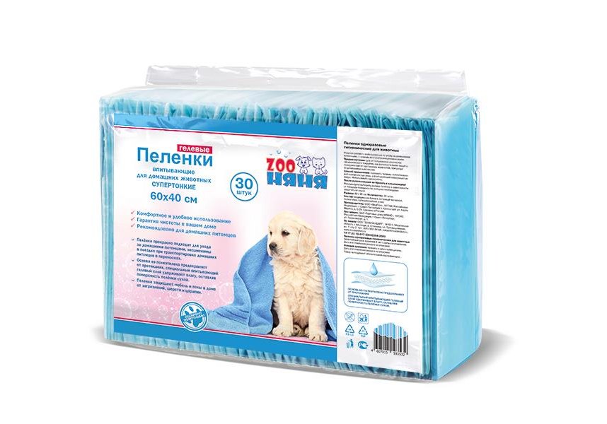Zoo Няня Пеленки Гелевые тонкие для домашних животных 30 штук 60х40 см