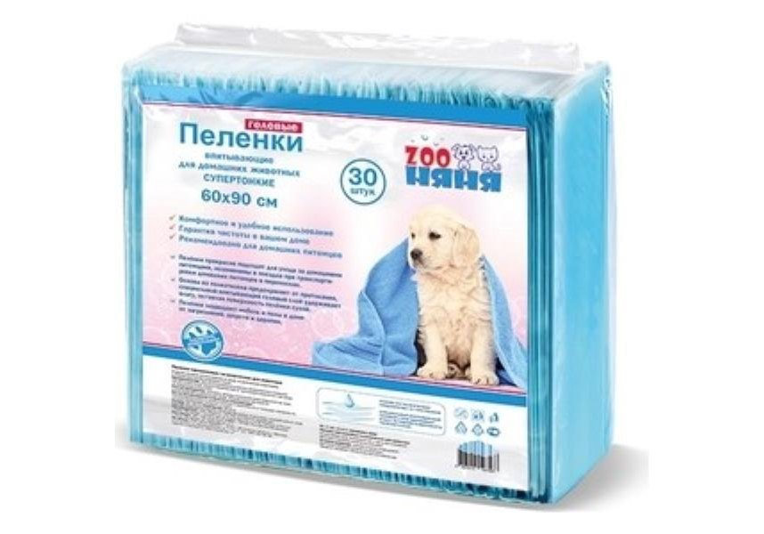 Zoo Няня Пеленки Гелевые тонкие для домашних животных 30 штук 60х90 см