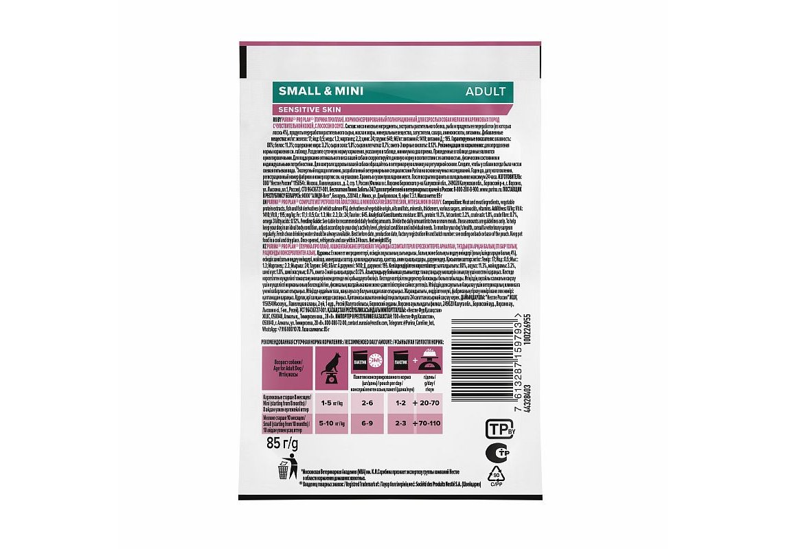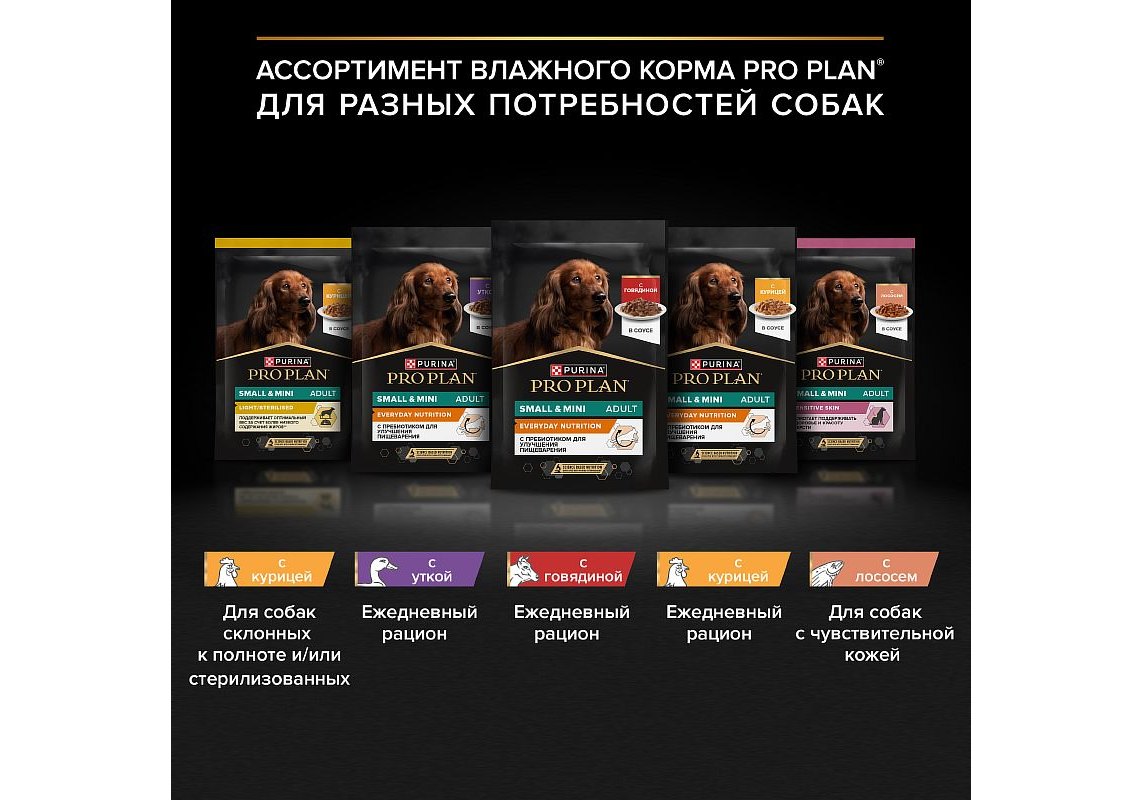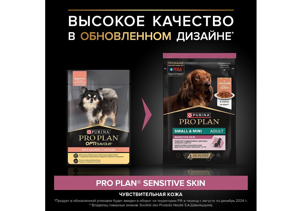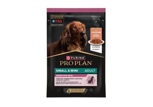 Изучая потребности собак на протяжении многих лет, команда квалифицированных ветеринарных специалистов и диетологов PURINA разработала влажный корм PRO PLAN® Sensitive skin (для чувствительной кожи) — ежедневный рацион с лососем в соусе для взрослых собак мелких и карликовых пород. Этот полнорационный корм сбалансирован по составу и помогает поддерживать здоровье чувствительной кожи.