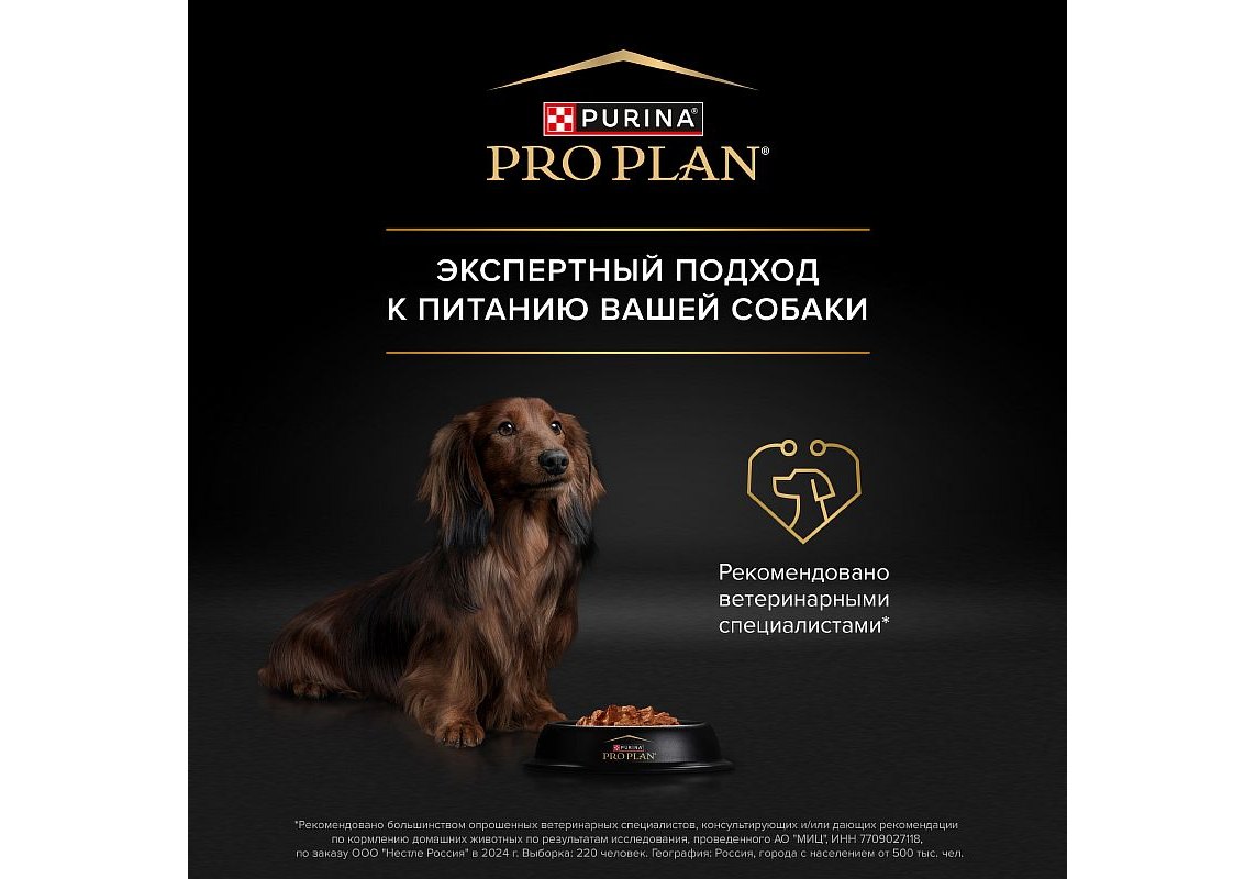 * Рекомендовано большинством опрошенных ветеринарных специалистов, консультирующих и/или дающих рекомендации по кормлению домашних животных, по результатам исследования, проведенного АО "МИЦ", ИНН 7709027118, по заказу ООО "Нестле Россия" в 2024 г. Выборка: 220 человек. География: Россия, города с населением от 500 тыс. чел.