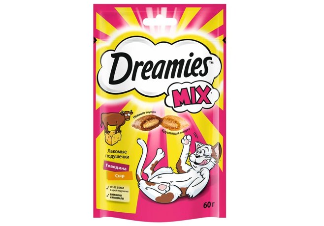 Dreamies Mix Лакомство Дримис для кошек Подушечки Говядина Сыр 60 г