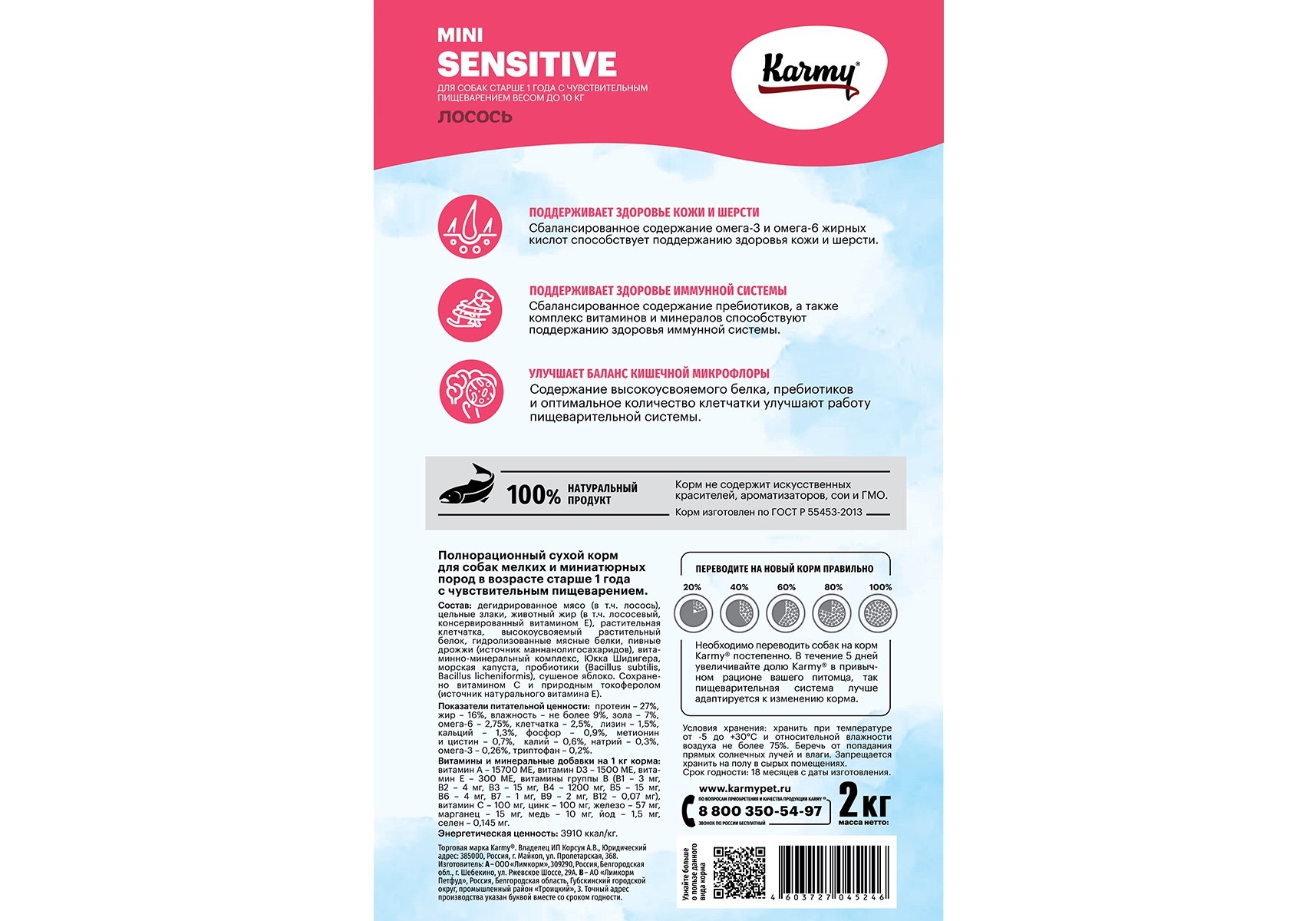 Karmy Sensitive Mini Сухой корм Карми для собак Мелких пород с Чувствительным пищеварением Лосось 2 кг