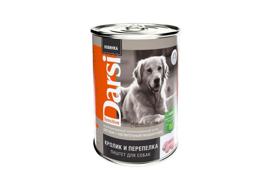 Darsi Sensitive Паштет Дарси для собак с Чувствительным пищеварением Кролик и Перепелка (цена за упаковку) 410г х 9шт