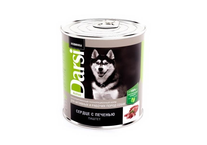 Darsi Active Паштет Дарси для Активных и рабочих пород собак Сердце с печенью (цена за упаковку) 850г х 6шт