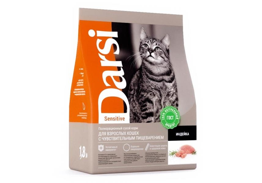Darsi Sensitive Сухой корм Дарси для взрослых кошек с Чувствительным пищеварением Индейка 1,8 кг