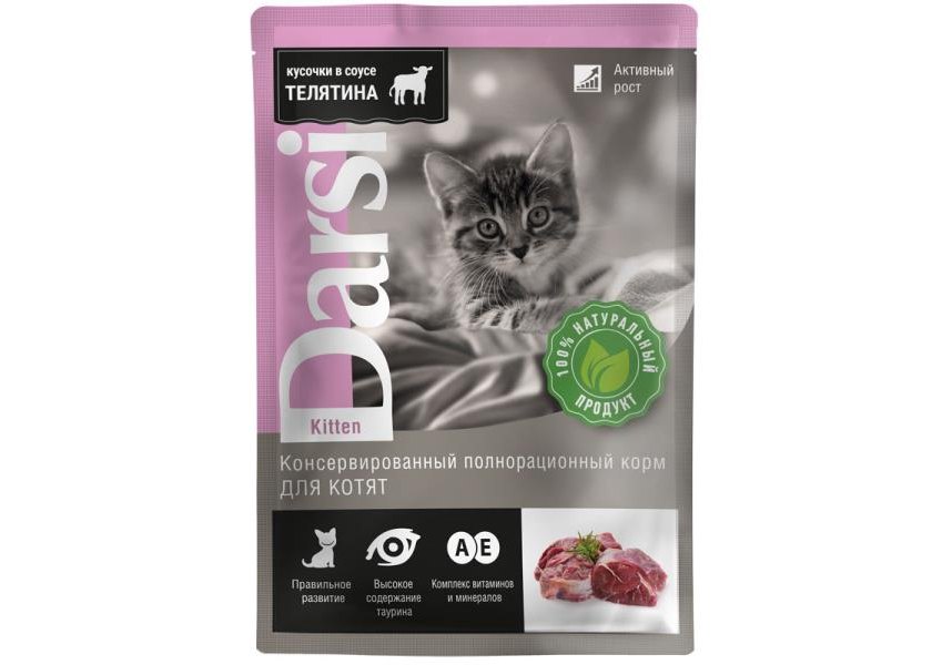 Darsi Kitten Паучи Дарси для Котят Кусочки в соусе Телятина (цена за упаковку) 85г х 32шт
