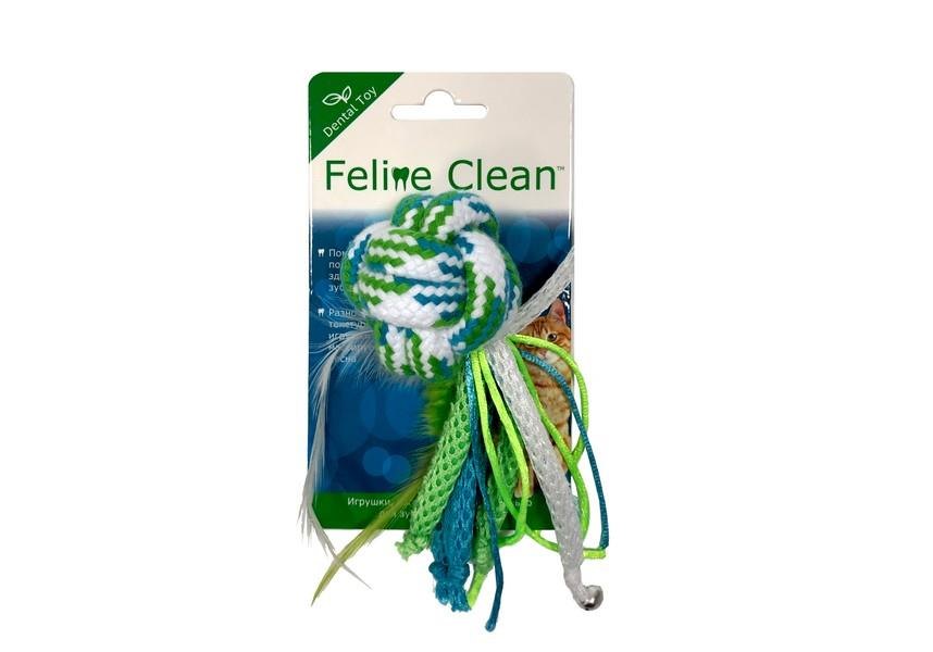 Feline Clean Dental Игрушка Фелин Клин для кошек Мячик из каната ленты и перьев 18 см