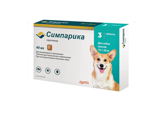 Zoetis Simparika Жевательные таблетки Симпарика для собак весом от 10 до 20 кг 40мг 3таб