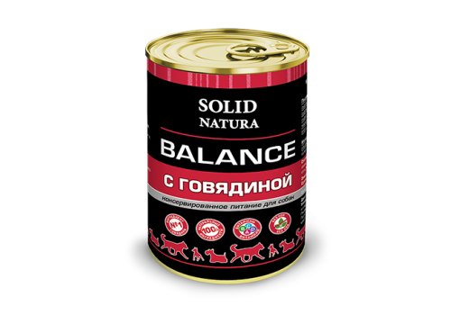 Solid Natura Balance Консервы Солид Натура для собак Говядина (цена за упаковку) 340г х 12шт
