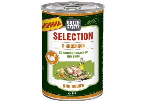 Solid Natura Selection Консервы Солид Натура для кошек с Индейкой (цена за упаковку) 340г х 12шт