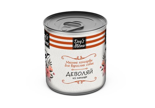 Dogs Menu Консервы Догс Меню для взрослых собак Деволяй из птицы (цена за упаковку) 750г х 9шт