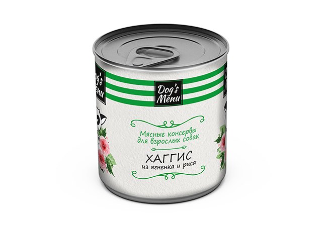 //Dogs menu/Влажный корм для взрослых собак/Со вкусом рис/Dogs Menu / Консервы Догс Меню для взрослых собак Хаггис из ягненка и риса (цена за упаковку)