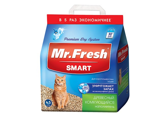 Mr.Fresh Smart Наполнитель Мистер Фреш для Короткошёрстных кошек Древесный 2,1 кг (4,5 л)