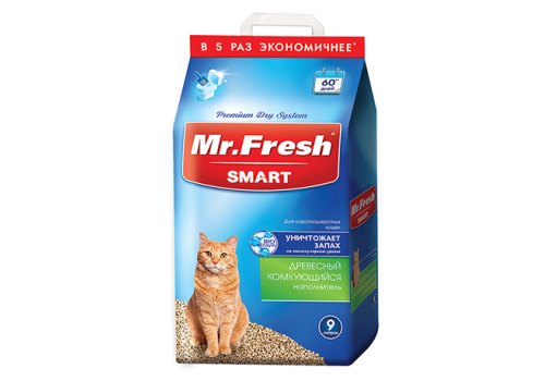 Mr.Fresh Smart Наполнитель Мистер Фреш для Короткошёрстных кошек Древесный 4,2 кг (9 л)