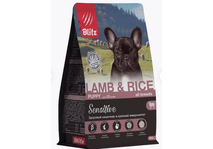 Blitz Puppy Sensitive All Breeds Lamb & Rice Сухой корм Блиц для Щенков всех пород Ягненок рис 500 г