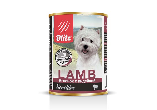 Blitz Sensitive Консервы Блиц для собак Ягненок с Индейкой (цена за упаковку) 400г х 24шт