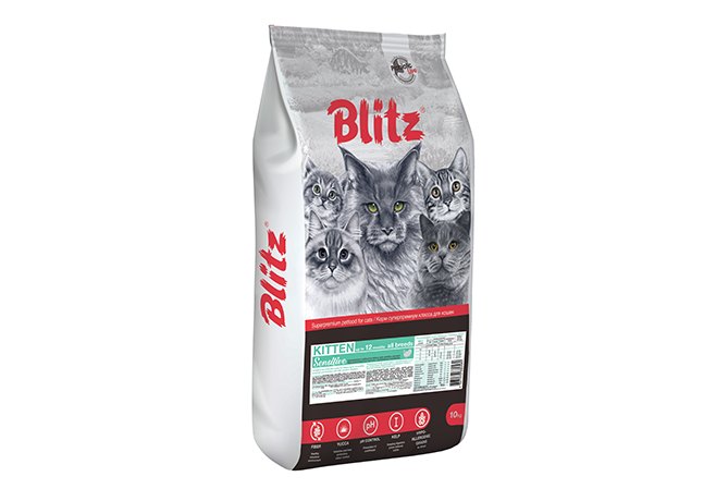 Blitz Kitten Sensitive All Breeds Turkey Сухой корм Блиц для Котят, беременных и кормящих кошек всех пород Индейка 10 кг