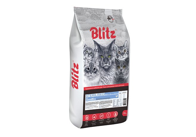 Blitz Sensitive Adult All Breeds Sterillised Сухой корм Блиц для Стерилизованных кошек всех пород 10 кг
