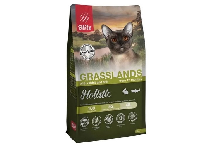 Blitz Holistic Grasslands Полнорационный сухой корм Блиц для взрослых кошек Кролик и рыба 5 кг