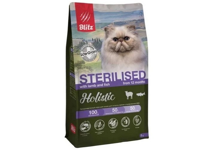 Blitz Holistic Sterilised Lamb and Fish Полнорационный сухой корм Блиц для стерилизованных кошек Ягненок и рыба 5 кг