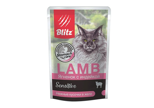 Blitz Sensitive Stomach Care Паучи Блиц для взрослых кошек Ягненок с Индейкой (цена за упаковку) 85г х 24шт