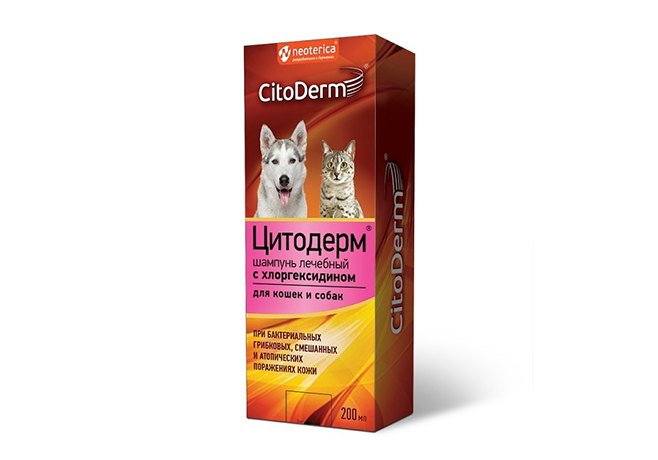 CitoDerm Шампунь Цитодерм для кошек и собак Лечебный с Хлоргексидином 200 мл