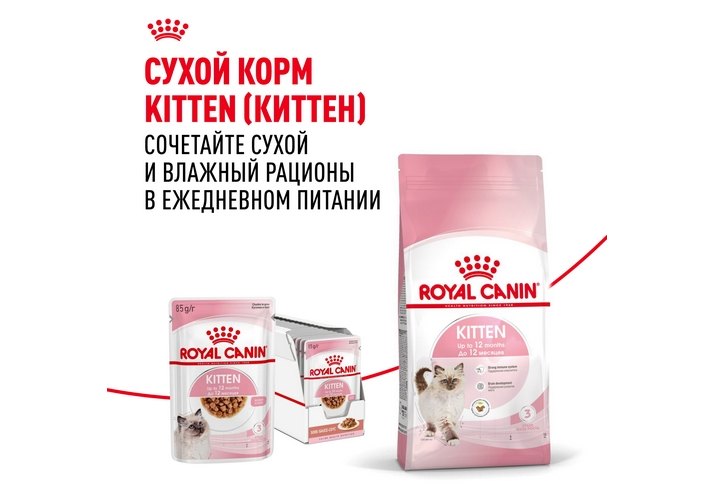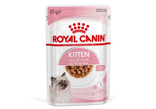 Кусочки в соусе ROYAL CANIN® Kitten удовлетворят даже самых привередливых котят. Этот влажный продукт обеспечивает котенку положительные ощущения во время кормления, поддерживает здоровый водный баланс в организме и отлично сочетается с гранулами сухого корма ROYAL CANIN® Kitten при смешанном кормлении.