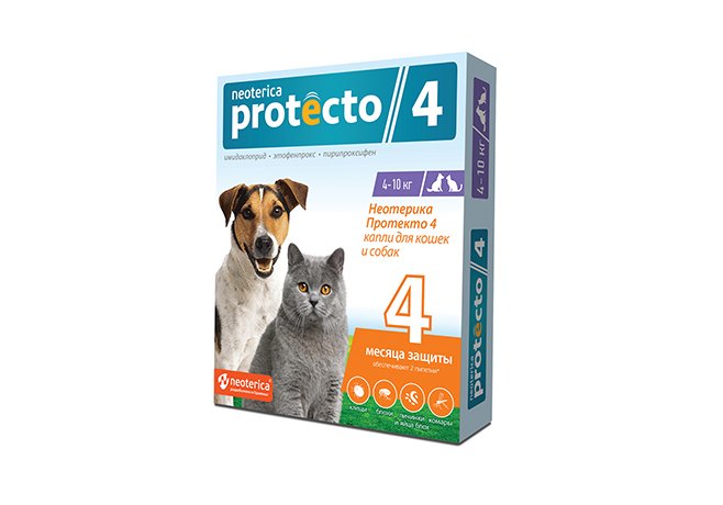 Neoterica Protecto 4 Капли Неотерика Протекто от Клещей и Блох для кошек и собак весом от 4 до 10 кг 1 х 2шт