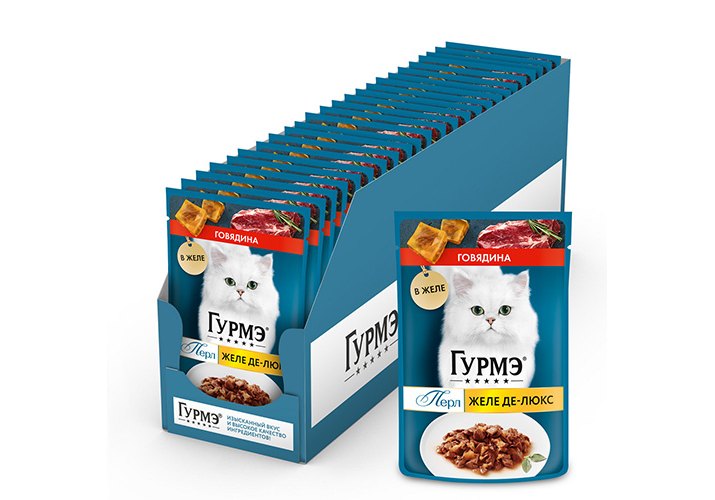 Гурмэ Перл Влажный корм Паучи Пурина Гурмэ Желе Де-Люкс для взрослых кошек с говядиной (цена за упаковку) 75г х 26шт