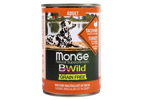 Monge Dog BWild Grainfree Adult Turkey Консервы Беззерновые Монж для взрослых собак Индейка тыква цукини (цена за упаковку) 400г х 24шт