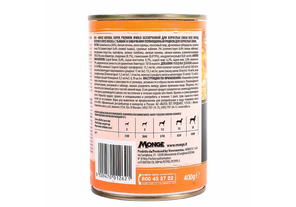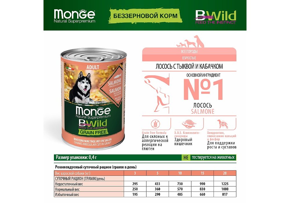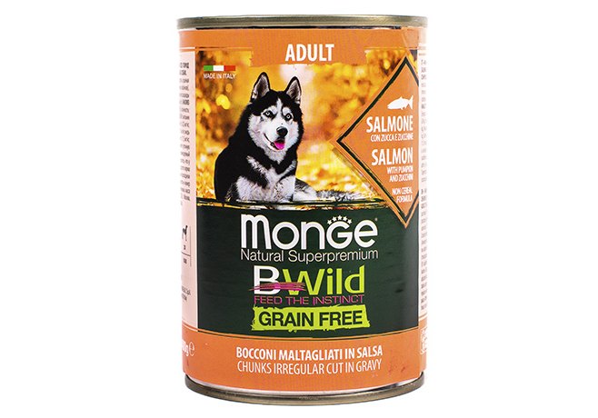 Monge Dog BWild Grainfree Adult Salmon Консервы Беззерновые Монж для взрослых собак Лосось тыква цукини (цена за упаковку) 400г х 24шт