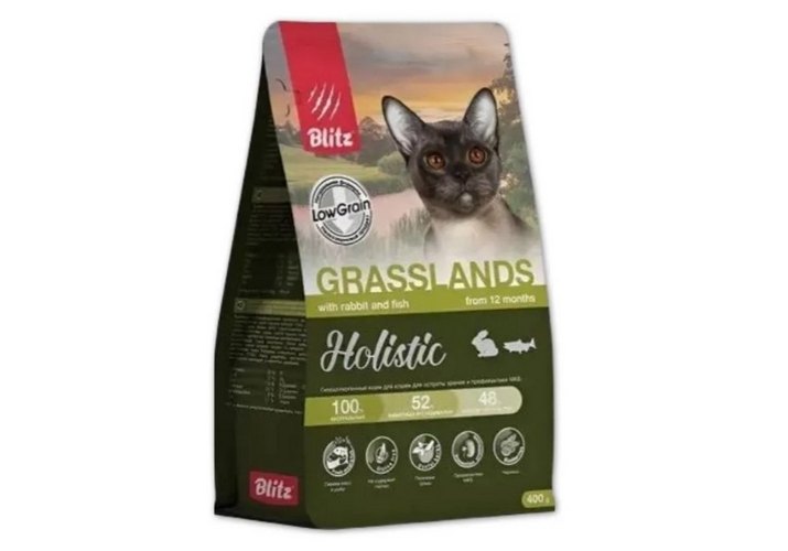 Blitz Holistic Grasslands Полнорационный сухой корм Блиц для взрослых кошек Кролик и рыба 400 г