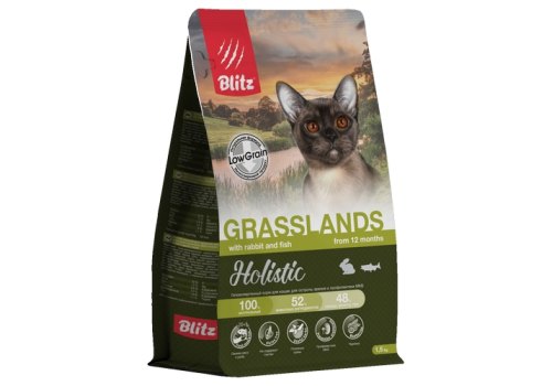 Blitz Holistic Grasslands Полнорационный сухой корм Блиц для взрослых кошек Кролик и рыба 1,5 кг