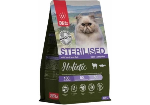 Blitz Holistic Sterilised Lamb and Fish Полнорационный сухой корм Блиц для стерилизованных кошек Ягненок и рыба 400 г