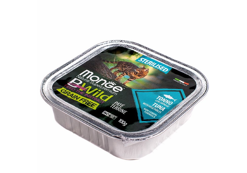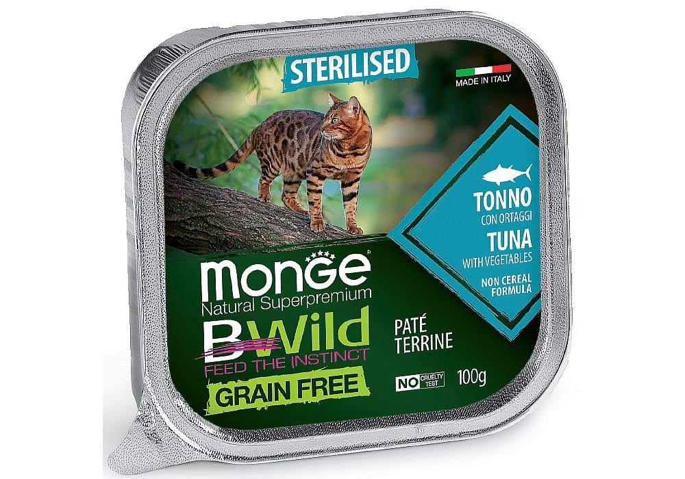 Monge Cat BWild Grain Free Sterilised Tuna Pate Влажный Беззерновой корм Монж для Стерилизованных кошек Паштет из Тунца с овощами (цена за упаковку) 100г х 32шт