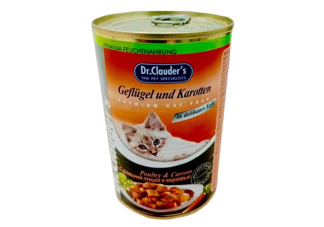 Dr.Clauder's Консервы Доктор Клаудерс для кошек Кусочки в соусе с Домашней птицей и Морковью (цена за упаковку) 415г х 12шт