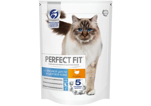 Perfect Fit Cat Hair & Skin Сухой корм Перфект Фит для кошек для Красивой шерсти и здоровой кожи Индейка 650 г