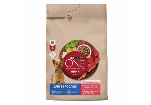 PURINA ONE ADULT Сухой корм Пурина УАН для взрослых собак мелких пород с говядиной 3 кг