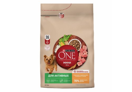 PURINA ONE MINI Сухой корм Пурина УАН для взрослых собак мелких пород при активном образе жизни с курицей 3 кг