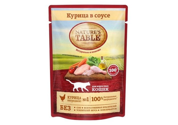 Natures Table Паучи Нейчерс Тейбл для взрослых кошек Курица в соусе (цена за упаковку) 85г х 28шт