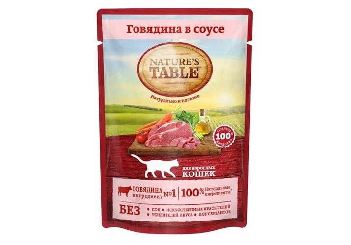 Natures Table Паучи Нейчерс Тейбл для взрослых кошек Говядина в соусе (цена за упаковку) 85г х 28шт