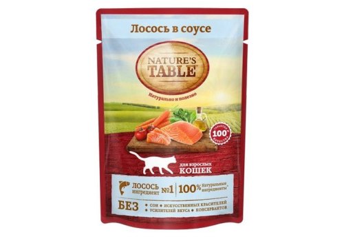 Natures Table Паучи Нейчерс Тейбл для взрослых кошек Лосось в соусе (цена за упаковку) 85г х 28шт
