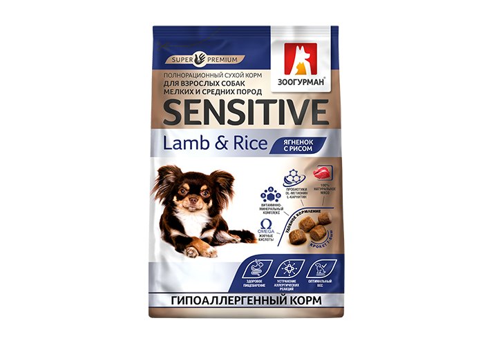 Зоогурман Sensitive Сухой корм для Мелких и Средних пород Ягненок с рисом 1,2 кг