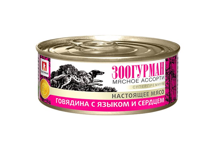 Зоогурман Влажный корм Консервы для собак Мясное ассорти Говядина с языком и сердцем (цена за упаковку) 100г х 24шт