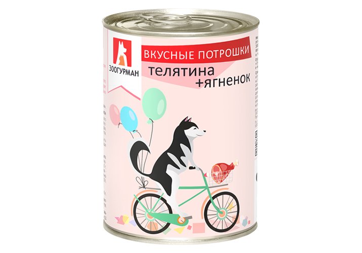Зоогурман Влажный корм Консервы для собак Вкусные потрошки Телятина+Ягненок (цена за упаковку) 350г x 12шт
