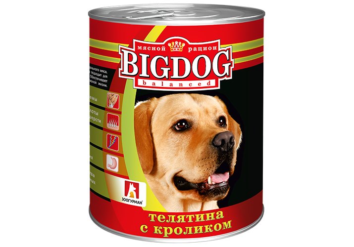 Зоогурман Big Dog Влажный корм Консервы для собак Телятина с кроликом (цена за упаковку) 850г х 6шт